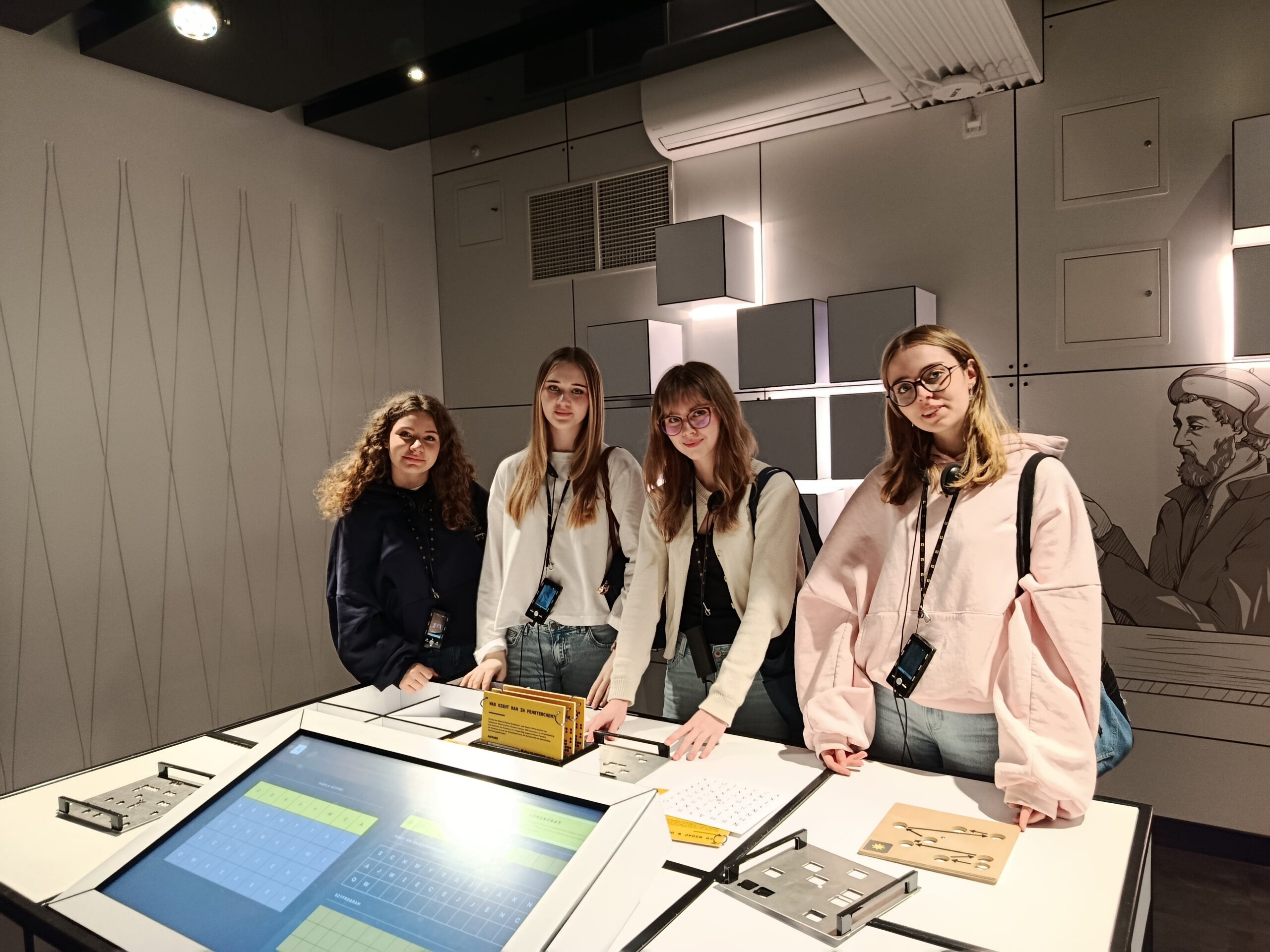 Monumentalne wnętrza i fascynujące opowieści sprawiły, że mogliśmy na chwilę przenieść się w czasie. Następnie odwiedziliśmy Centrum Szyfrów Enigma, gdzie odkrywaliśmy tajemnice kryptologii i poznawaliśmy kulisy złamania szyfru Enigmy. To była prawdziwa