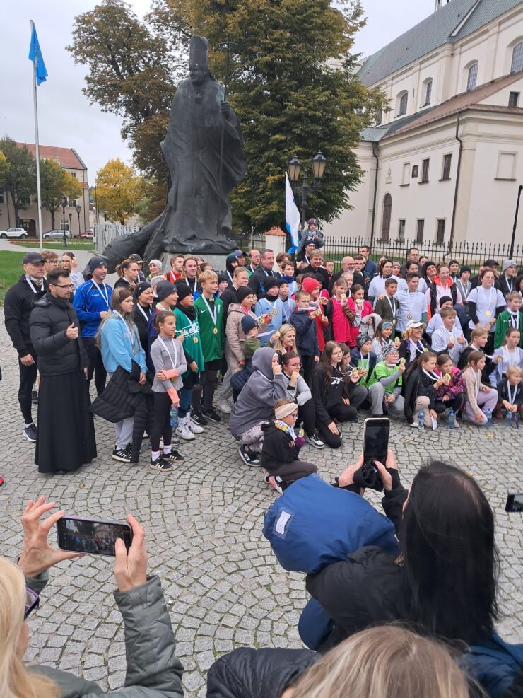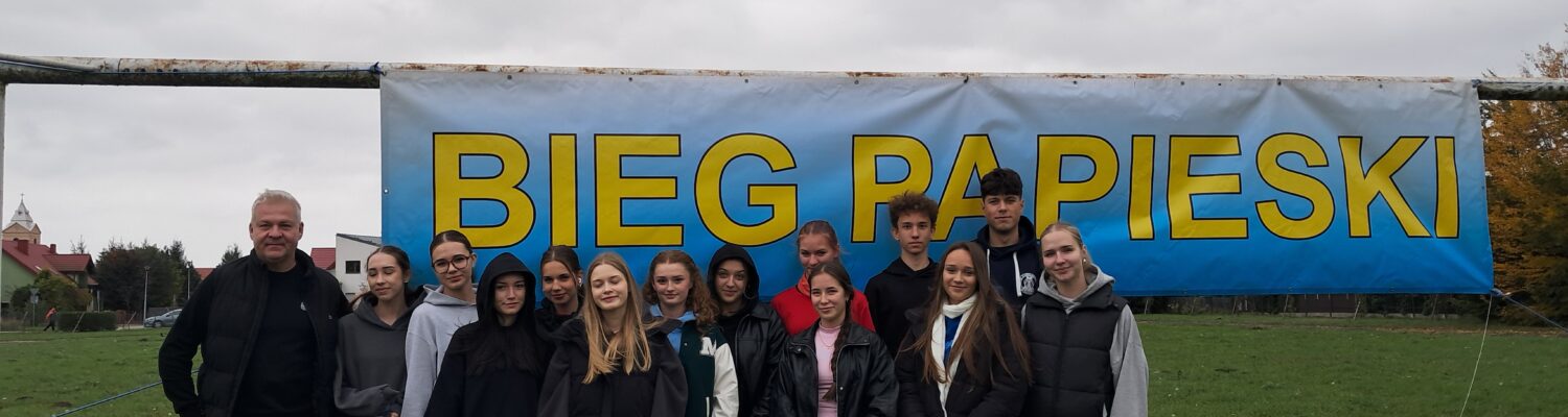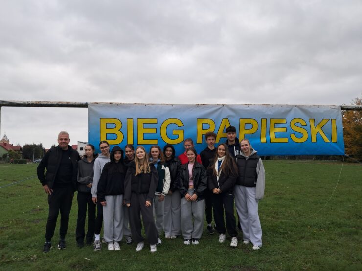 W niedzielę 12 października o godzinie 15 na boisku sportowym SP7 piętnastoosobowa reprezentacja naszej szkoły stanęła na starcie Biegu Papieskiego. Do pokonania była niespełna trzy kilometrowa trasa, której meta znajdowała się na Starym Rynku przy pomniku św. Jana Pawła ll. Wszyscy dobiegli uśmiechnięci