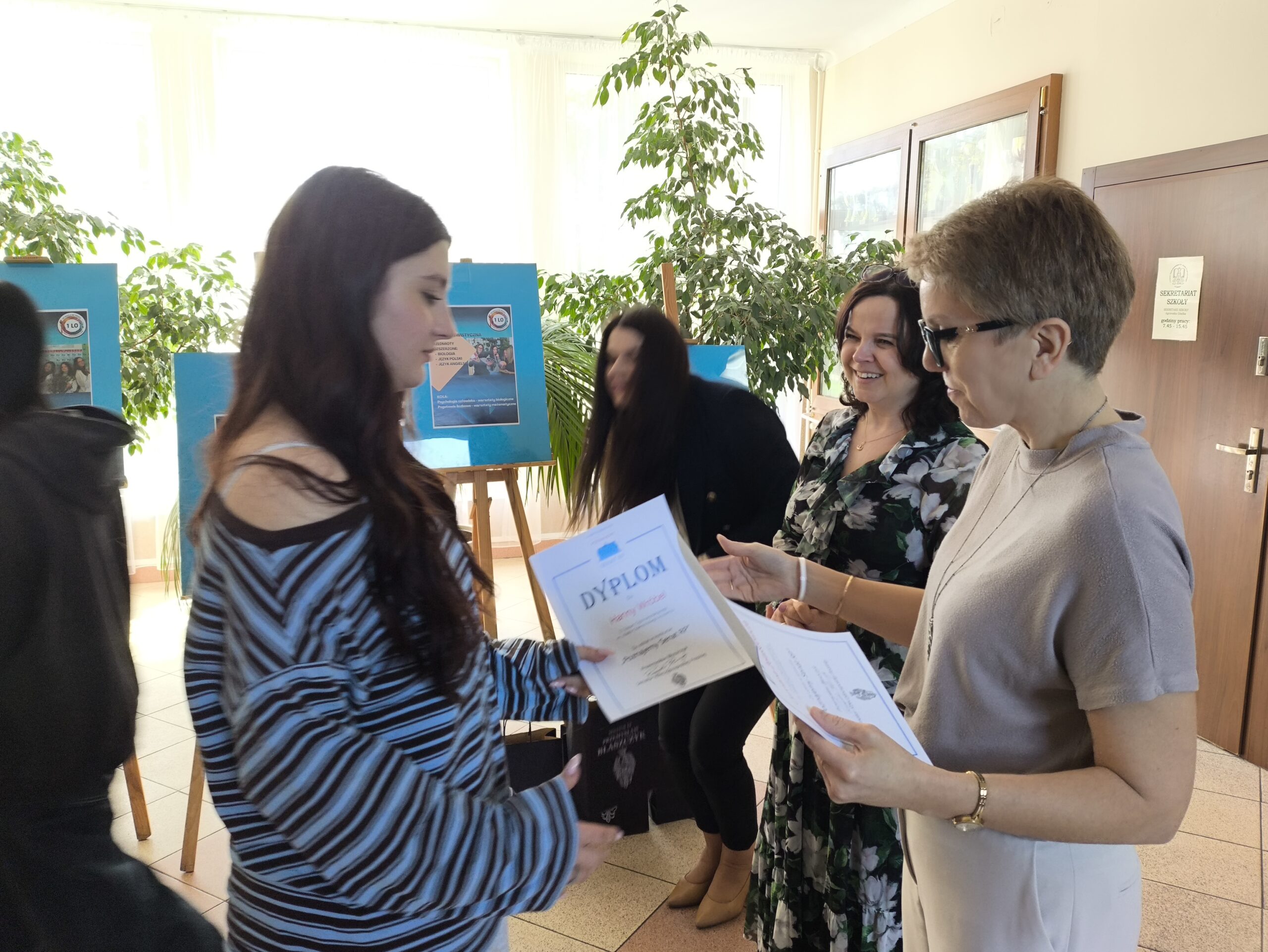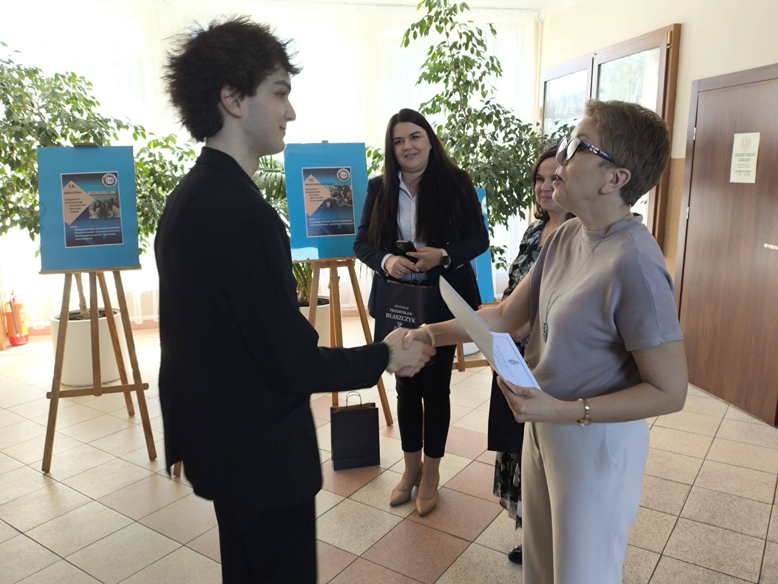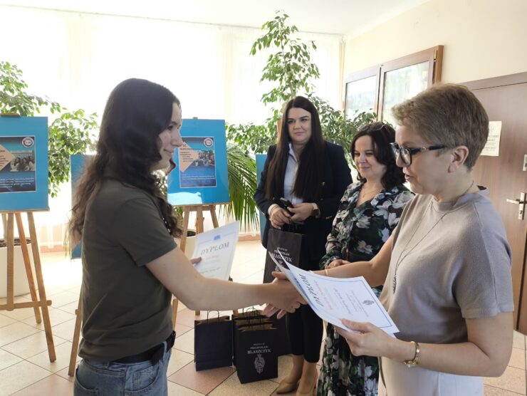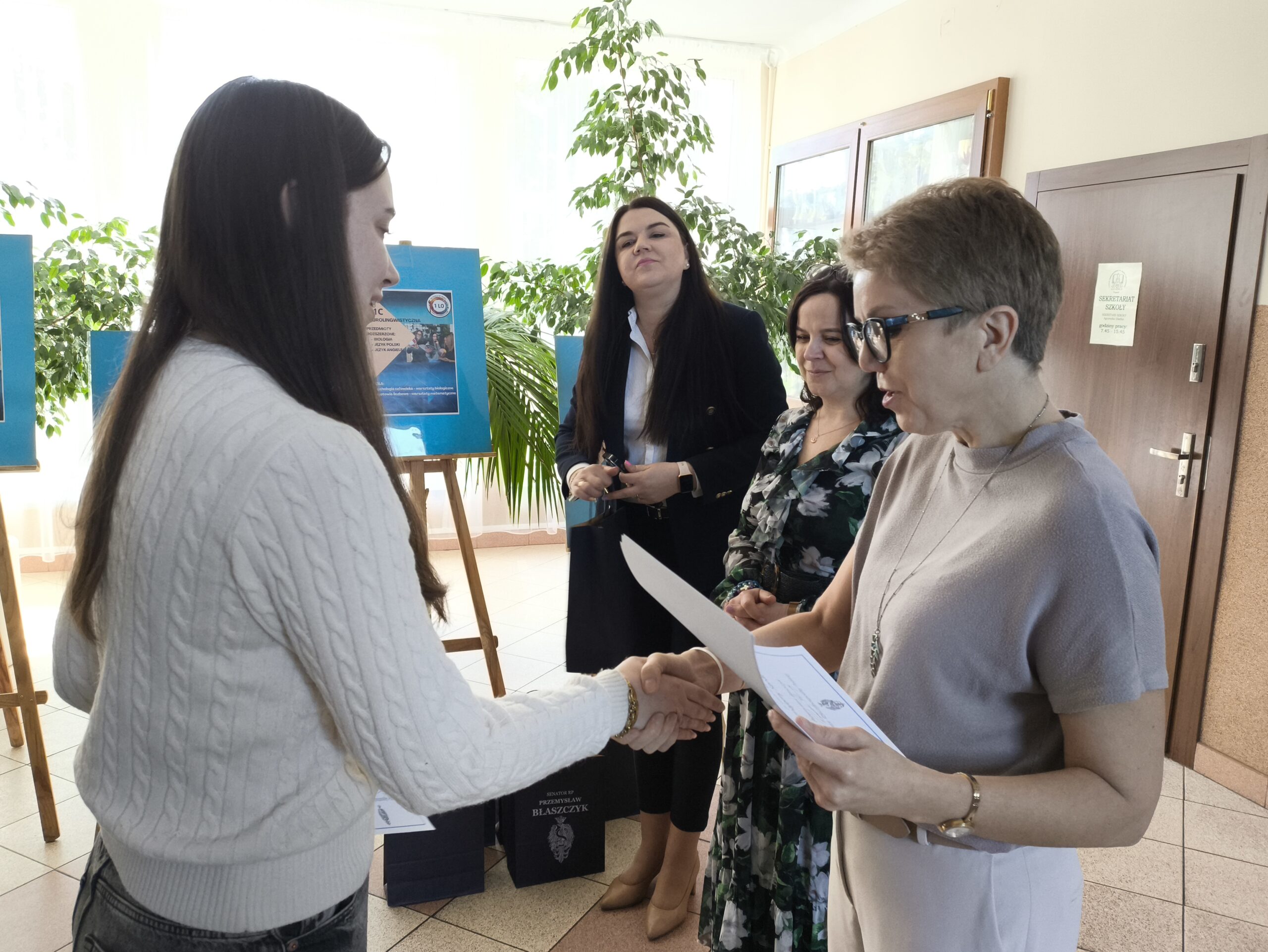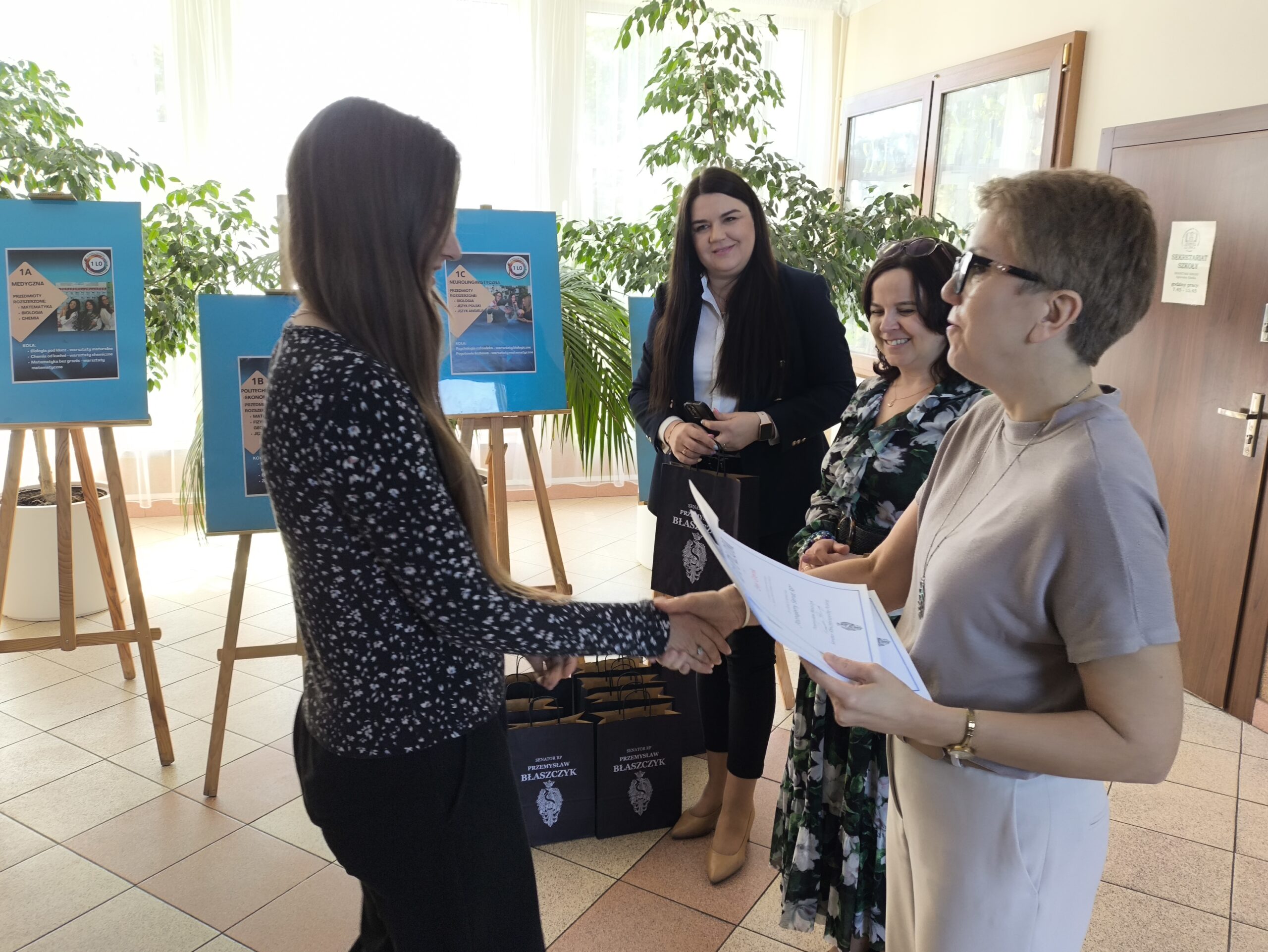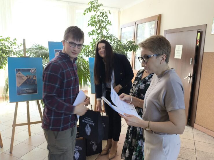 W środę, 22 kwietnia, gościliśmy w naszej szkole panią Aleksandrę Dudkiewicz, dyrektor biura senatorskiego senatora Przemysława Błaszczyka. Wizyta miała na celu wręczenie upominków i dyplomów uczniom naszego liceum, którzy wzięli udział w ogólnopolskim