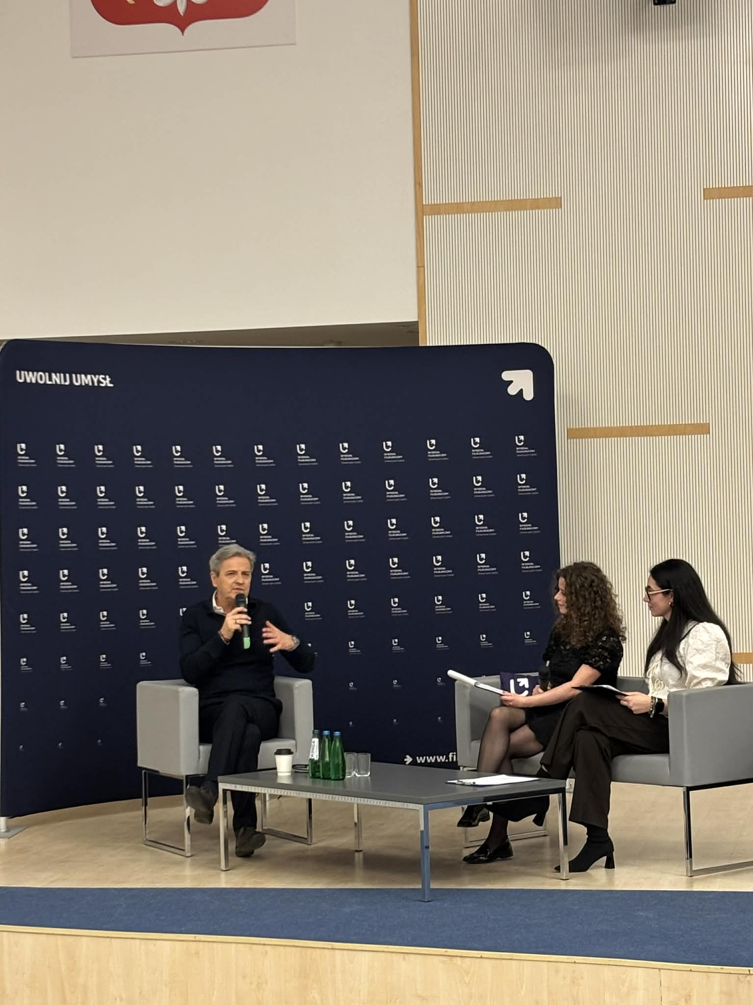 Prawdziwą wisienką na torcie było jednak spotkanie z Piotrem Polkiem – wybitnym aktorem teatralnym i filmowym, laureatem tytułu Mistrza Mowy Polskiej. Artysta opowiadał o swoich językowych korzeniach i przygodzie z „łodzianizmami”. Zapewnił też słuchaczy, że teatr nie da się zdominować sztucznej inteligencji.