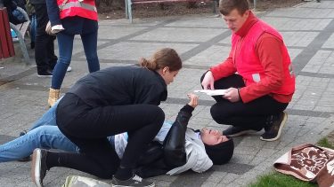 Zawodnicy udzielali pierwszej pomocy poszkodowanym w pozorowanych wypadkach w parku Błonie w Łowiczu. Uczestnicy zawodów rozwiązywali test wiedzy z zakresu udzielania pierwszej pomocy i prawa humanitarnego. Ponadto musieli zmierzyć się z takimi urazami jak: uszkodzenie kręgosłupa, złamanie, rana postrzałowa, uraz głowy, wstrząs, omdlenie czy zatrzymanie oddechu. Ze wszystkimi przypadkami dali sobie świetnie radę i uzyskali od sędziów wysokie noty.