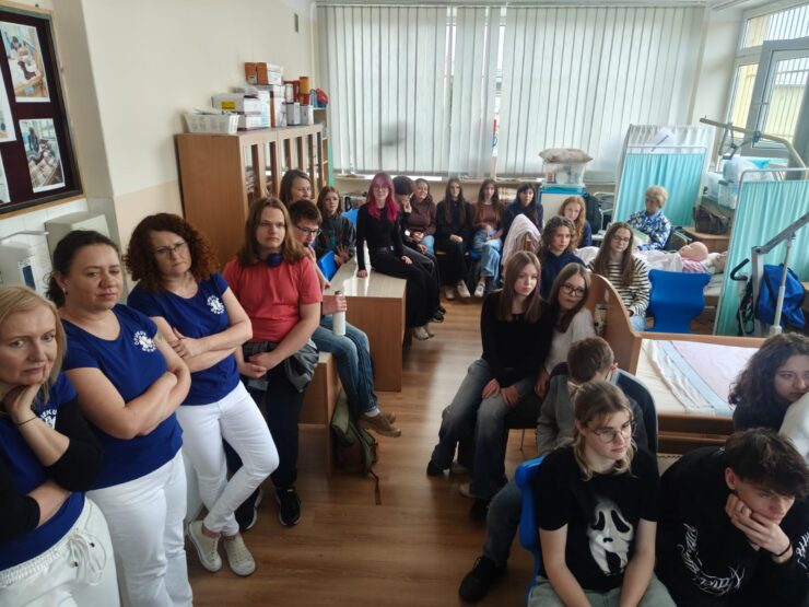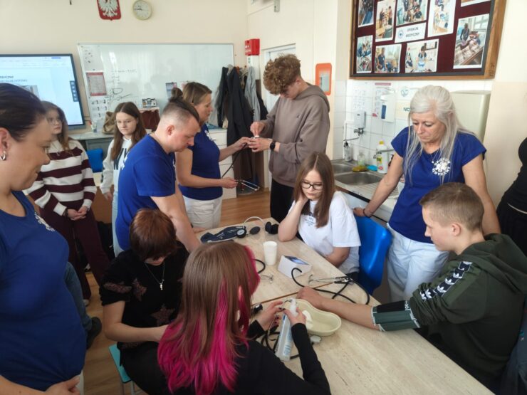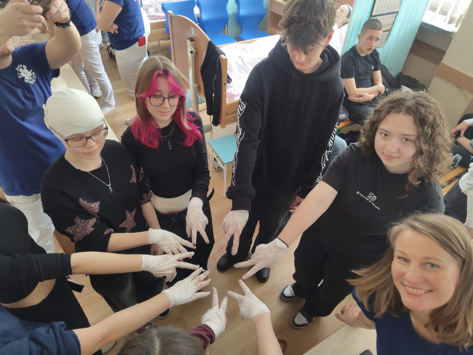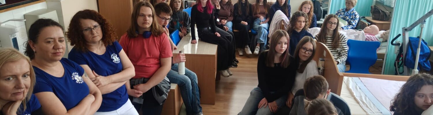 Klasa Medyczna1a z „Chełmońskiego” była dzisiaj na zajęciach praktycznych w ZSiPOWŁ. Podczas zajęć uczniowie uczyli się prawidłowo mierzyć ciśnienie, tętno oraz ćwiczyli jak profesjonalnie opiekować się chorym i osobą zdrową z niepełnosprawnością.
