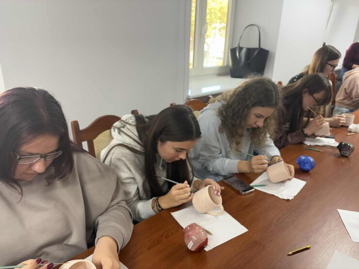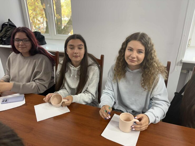 W dniu dzisiejszym kolejny raz nasze uczennice wzięły udział w działaniach w ramach projektu „Odkrywamy ginące zawody – rzemiosło w Łowiczu” realizowanego przez Powiatową Bibliotekę Publiczną im.ks.prał. Stefana Wysockiego w Łowiczu. Tym razem uczennice klasy 3C uczestniczyły w warsztatach garncarskich. Na początku poznały krótką historię garncarstwa z etapami powstawania naczyń z gliny – od przygotowania surowca, przez formowanie na kole garncarskim, aż po wypał w piecu ceramicznym. Następnie przeszły do części praktycznej, która od razu wzbudziła ogromne zainteresowanie i entuzjazm.