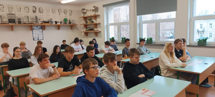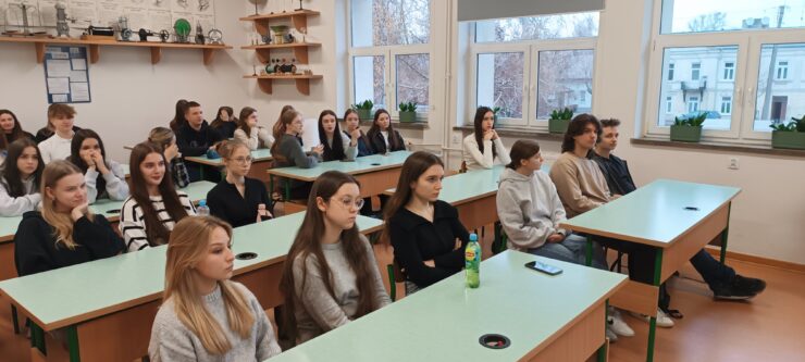 Nasi Goście przedstawili ofertę edukacyjną Politechniki Łódzkiej a uczestniczyli w spotkaniu zainteresowani uczniowie klas politechnicznych 3b i 4b oraz klas medycznych 4a i 4e – razem około 60 osób.
