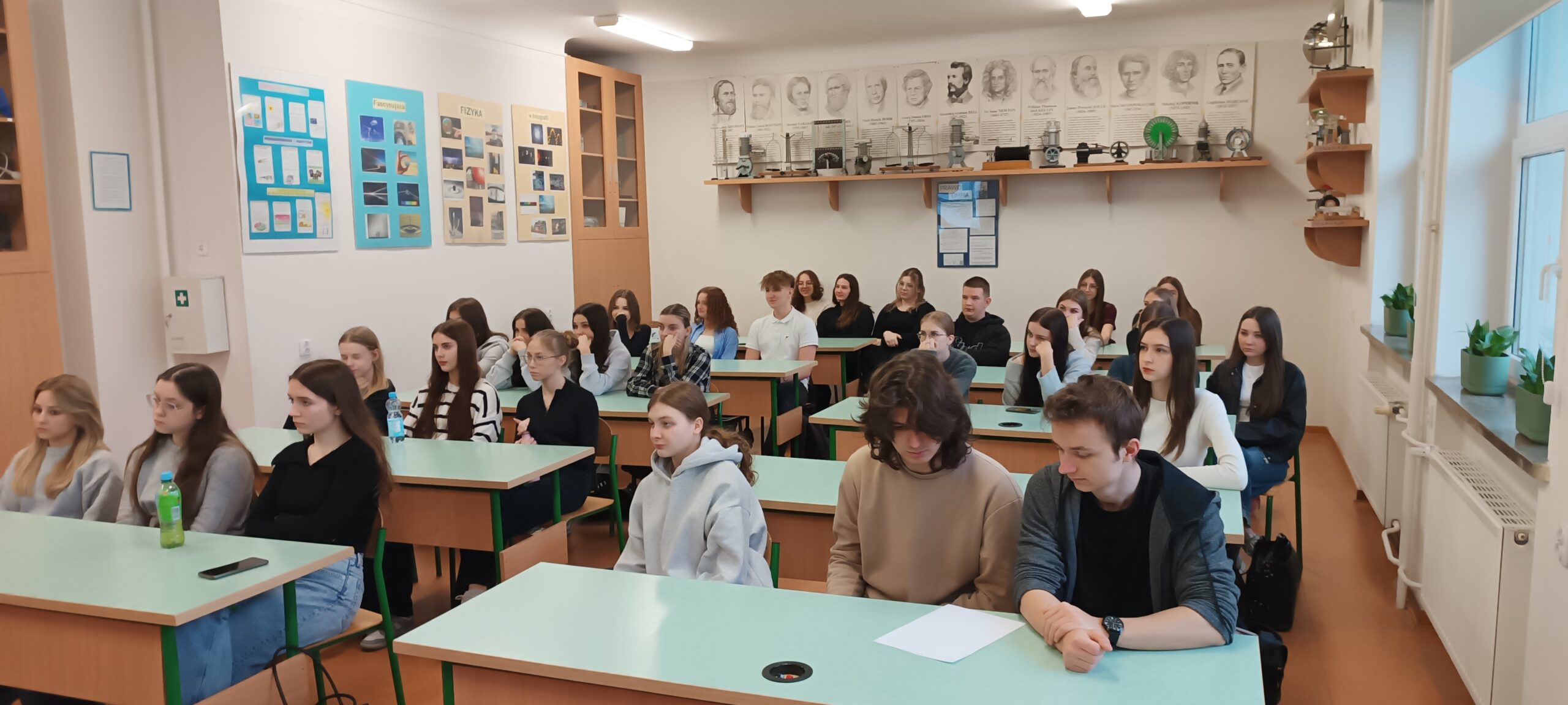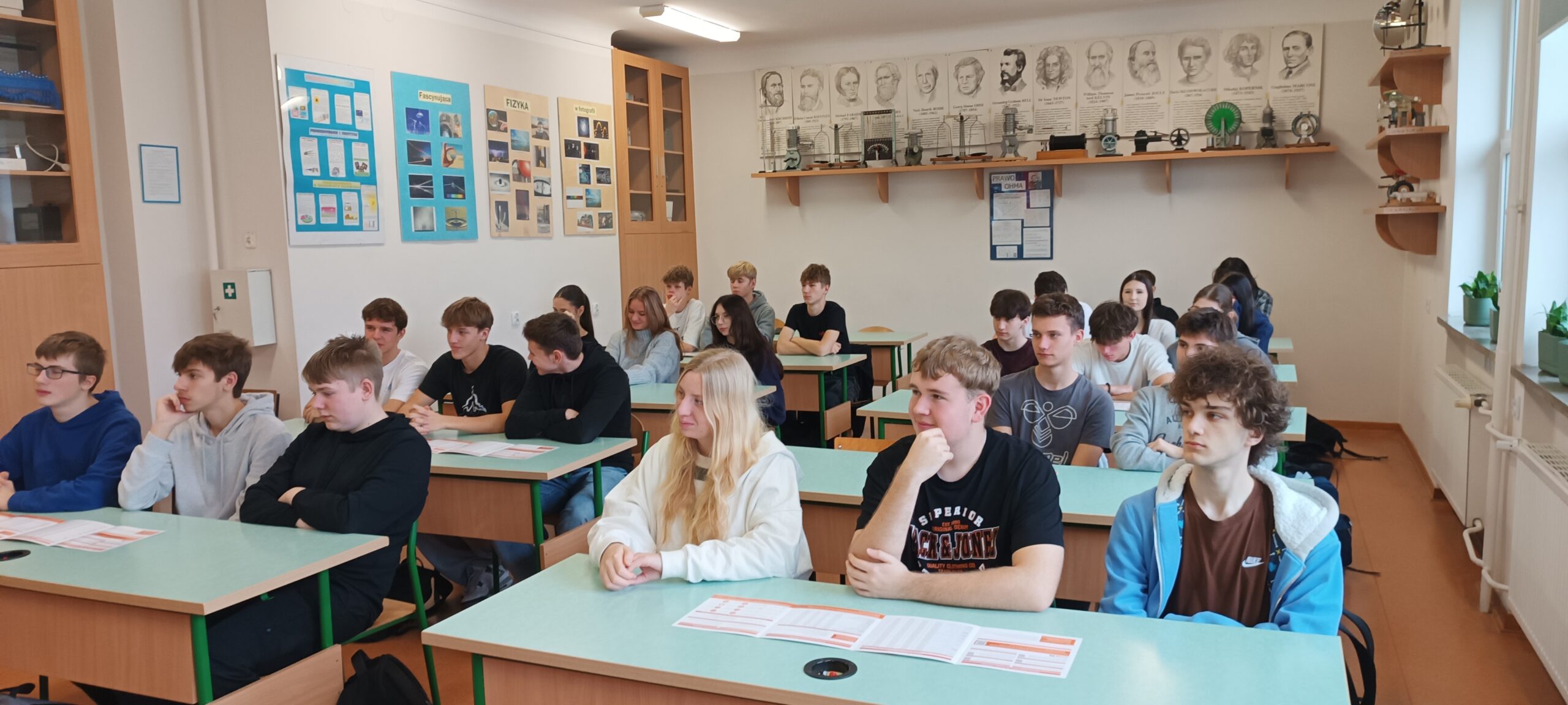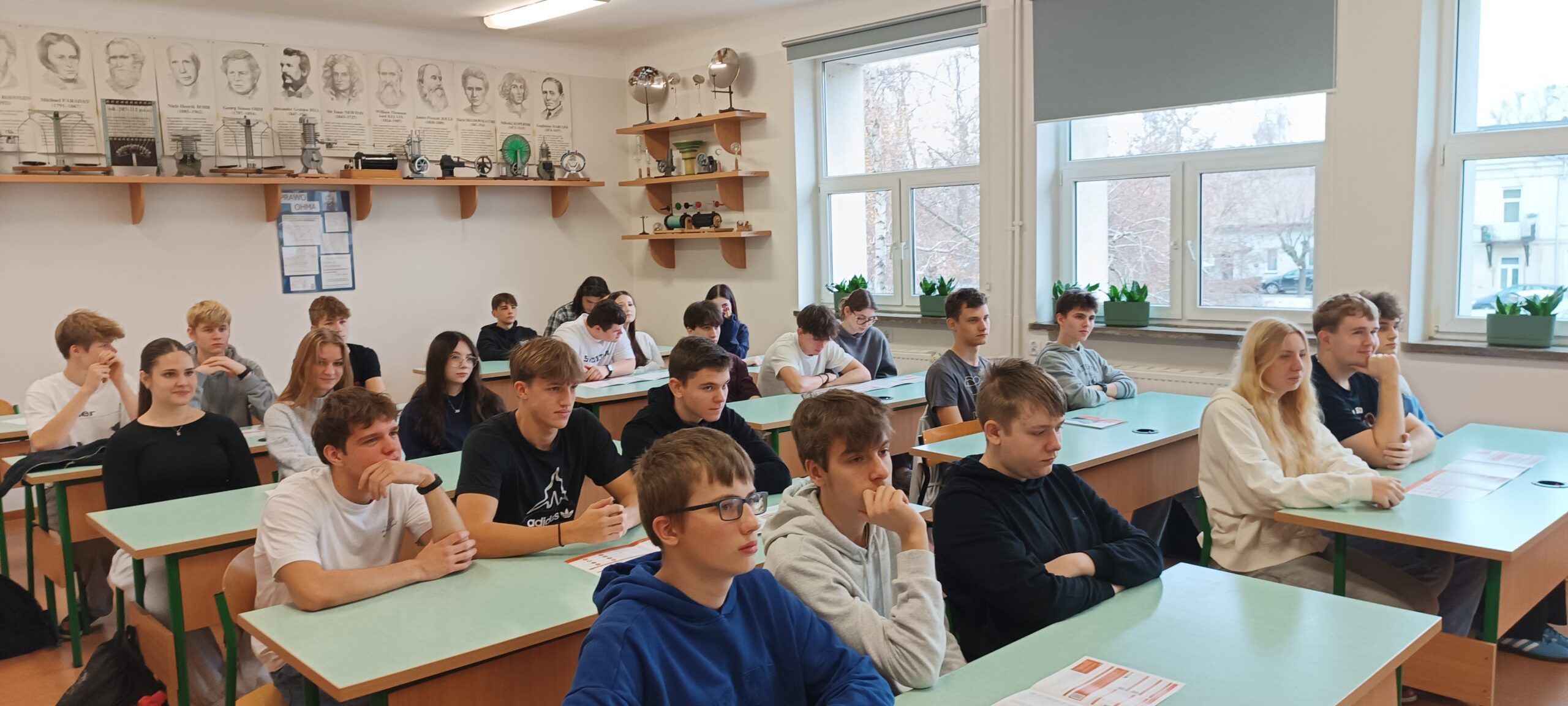 Nasi Goście przedstawili ofertę edukacyjną Politechniki Łódzkiej a uczestniczyli w spotkaniu zainteresowani uczniowie klas politechnicznych 3b i 4b oraz klas medycznych 4a i 4e – razem około 60 osób.