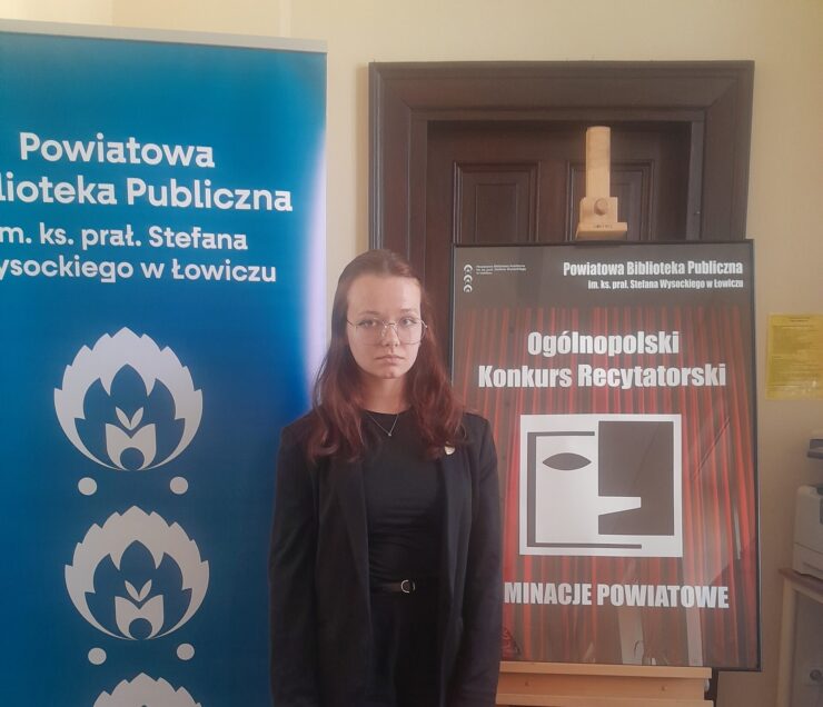 Nasza reprezentantka na scenie! 🎤 Dominika Walak z klasy 1d wzięła dziś udział w Eliminacjach Powiatowych 71. Ogólnopolskiego Konkursu Recytatorskiego w Powiatowej Bibliotece Publicznej w Łowiczu. Gratulujemy występu i dziękujemy za godne reprezentowanie barw ‘Chełmońskiego’. Każdy taki występ to cenna lekcja i krok w stronę doskonałości. Tak trzymaj! 💪