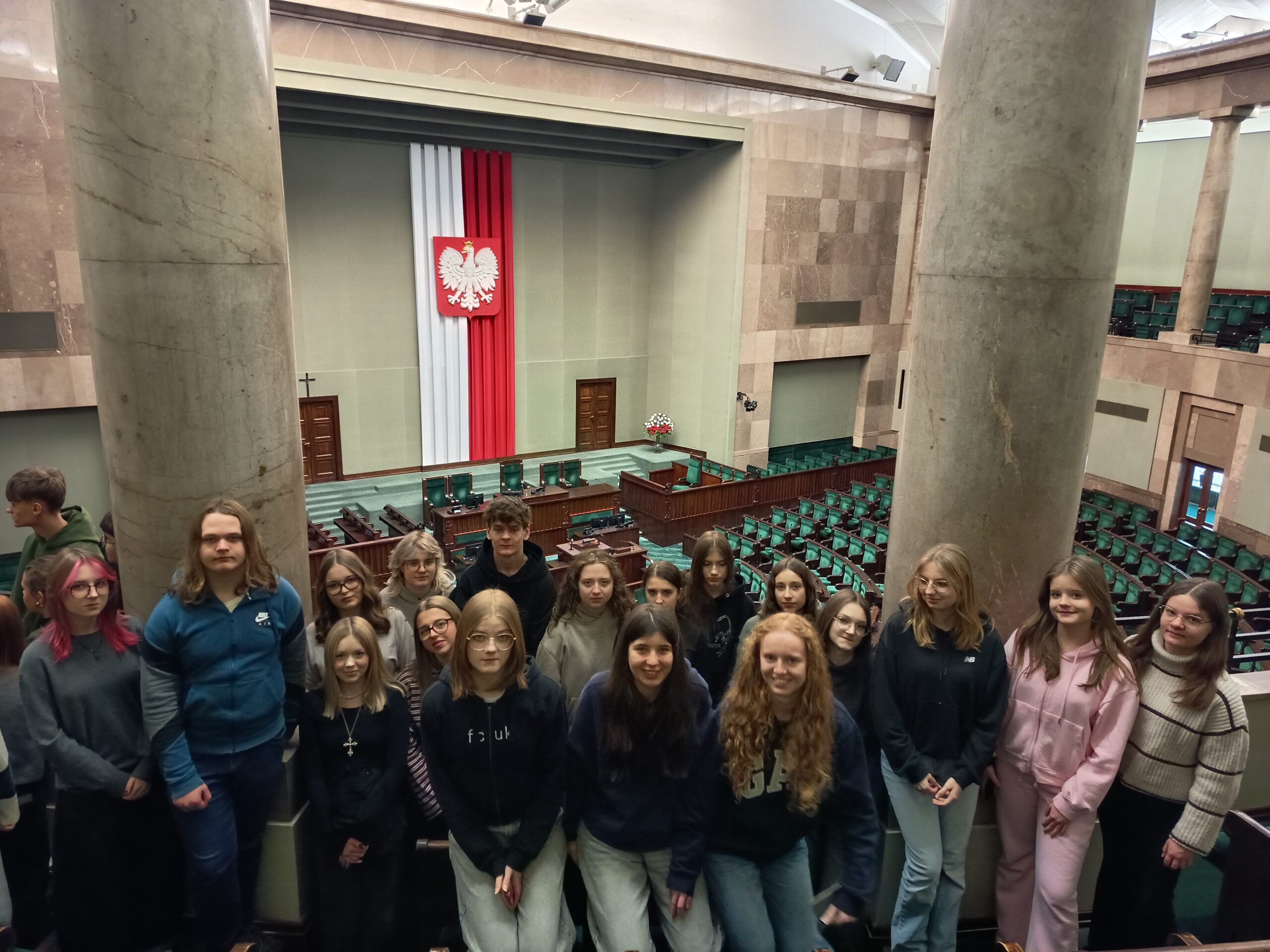 20 stycznia uczniowie klas 1a i 1b wraz opiekunkami: panią Agnieszka Bochniak, panią Anną Kucharek – Znyk oraz panią Agnieszką Piorun, wzięli udział w wycieczce edukacyjnej do Warszawy. Wyjechaliśmy bardzo wcześnie po to, aby rozpocząć dzień od zwiedzania Sejmu Rzeczypospolitej Polskiej, w którym mieliśmy okazję poznać zasady funkcjonowania polskiego parlamentu, zwiedzić  salę obrad oraz dowiedzieć się, jak powstają ustawy. Była to cenna lekcja wiedzy o państwie i demokracji. Kolejny punkt programu to wizyta w Muzeum Nauki i Techniki, które wzbudziło ogromne zainteresowanie wszystkich uczniów. Zaprezentowane tam ekspozycje pozwoliły nam w przystępny i atrakcyjny sposób zgłębiać tajniki nauki oraz rozwoju technologii – dużo cennej wiedzy dla wszystkich.   Następnie – Centrum Pieniądza, tu poznaliśmy historię pieniądza, zasady funkcjonowania bankowości, mieliśmy okazję usłyszeć ciekawostki związane z finansami oraz…. choć na chwilę, potrzymać ogromną sztabkę złota o wadze 400 uncji trojańskich ( ok 12,5 kg). Jak myślicie, ile może kosztować? Mieliśmy również czas na spacer po centrum Warszawy. Podziwialiśmy najbardziej atrakcyjne miejsca stolicy i wysłuchaliśmy interesujących opowieści o nich. To był długi, mroźny, ale niesamowity dzień!